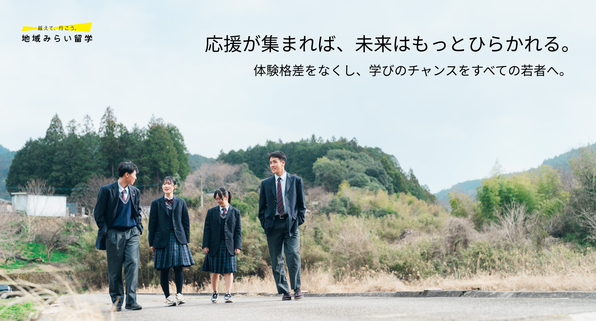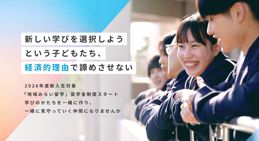 「地域みらい留学」は公立高校への進学ということで、学費の負担はほぼありませんが、生活費として3年間で200万円程度の費用が必要です。海外留学や一部の私立高校と比べるとコストは抑えられますが、それでも家庭の経済状況によっては進学のハードルが高くなることがあります。 そこで、こうした意欲ある生徒の挑戦を支えるために、3年間で100万円を給付する奨学金制度を設けました。 この奨学金の財源には、ふるさと納税をはじめとする皆さまからのご寄付が活用されています。 地域の学校で学び、地域と共に成長するという新しい進学のかたちを、もっと多くの子どもたちへ。 未来へ挑戦する若者たちに、どうかあたたかい応援をお願いいたします。